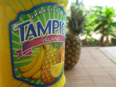 Tampico is a super sweet “juice drink” made in Ghana (but part of an American originated multinational company). Most probably it has more color and sugar in it than any fruit, but in this new version with the tantalizing name “Island”, Tampico has really reinvented itself and gone from chemical sweetened mix to…Island drink!
